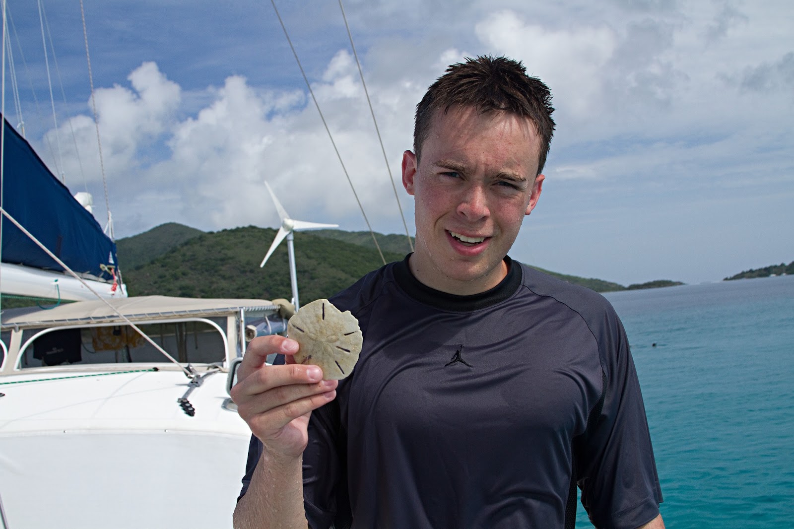 While we waited for wind, the kids dove for sand dollars in about 15 feet of water, and managed to find the biggest starfish I’ve ever seen. It was bright orange, and had to be over a foot in diameter. We had to have the “Starfish would make poor pets back at home” speech.