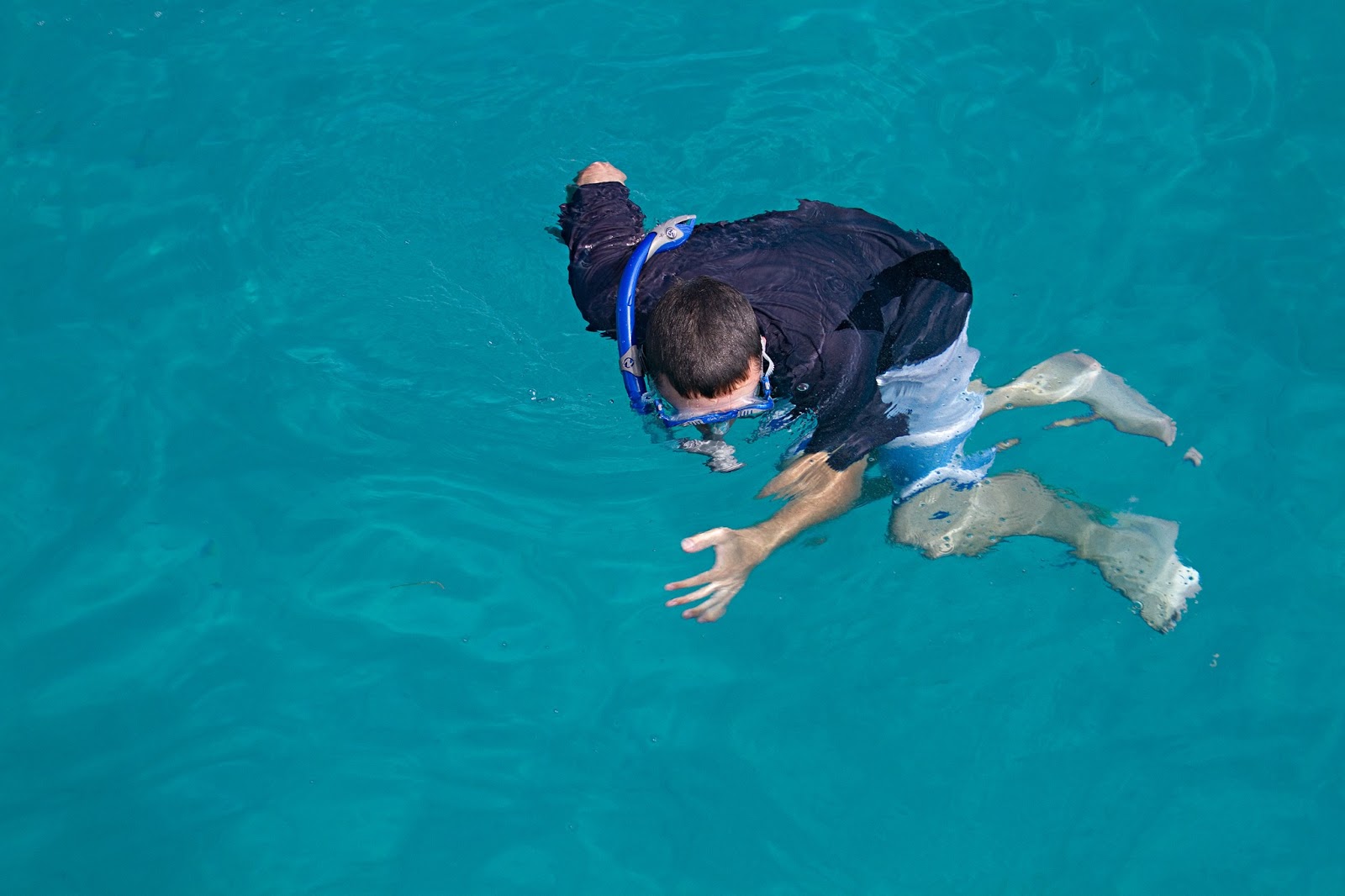 With half the kids in the water, we decided to head for the caves. So everyone donned gear and jumped in for the swim over to the caves. The caves aren’t too deep, but it is helpful to have an underwater flashlight when going inside. The younger kids found the experience a little spooky, and didn’t mind focusing their snorkeling around the mouth of the cave. We searched and searched, but found no pieces of eight.